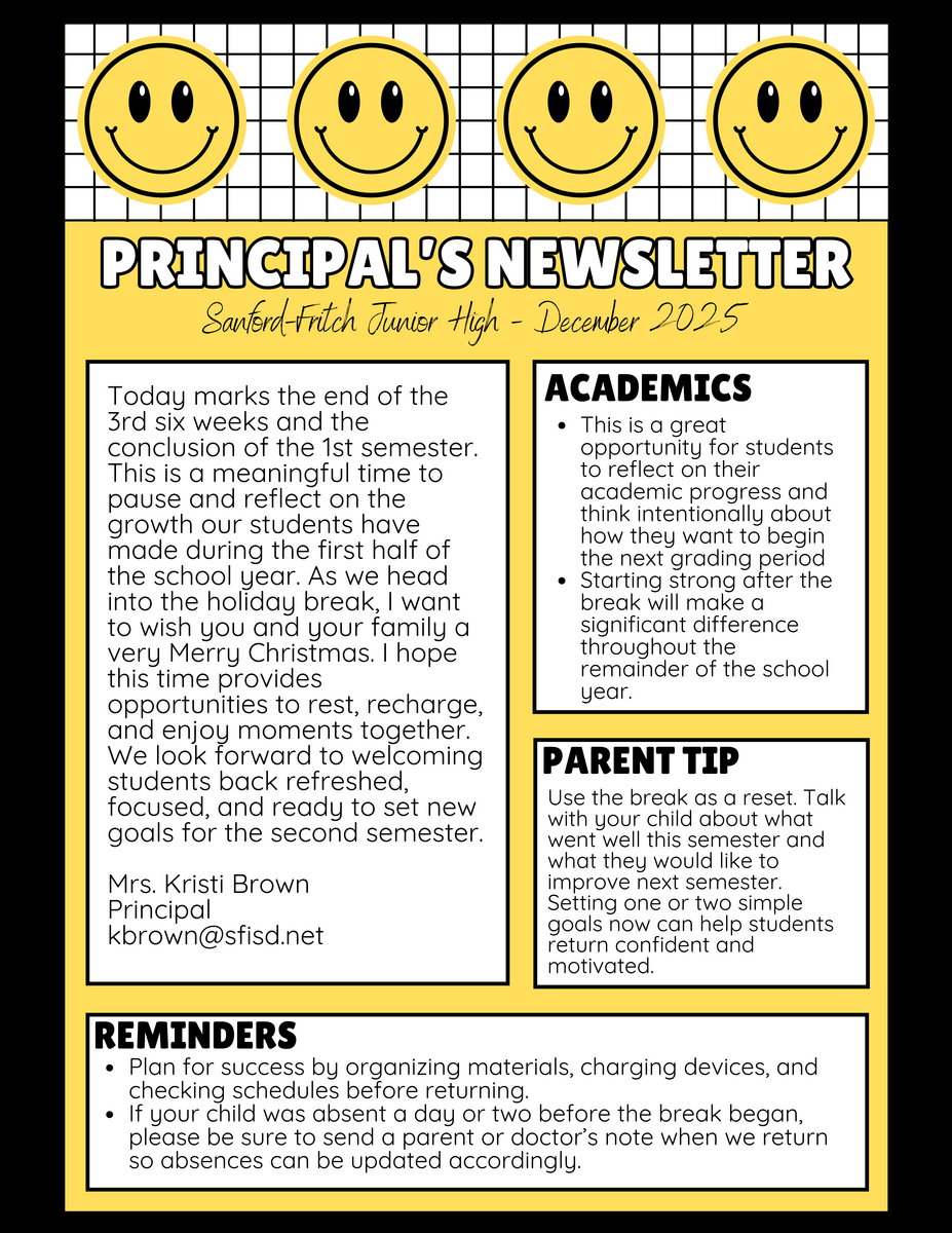 📬 Principal’s NewsletterOur end-of-semester newsletter is now available for families!Today marks the end of the 3rd six weeks and the 1st semester, and students are officially on Christmas break fo...