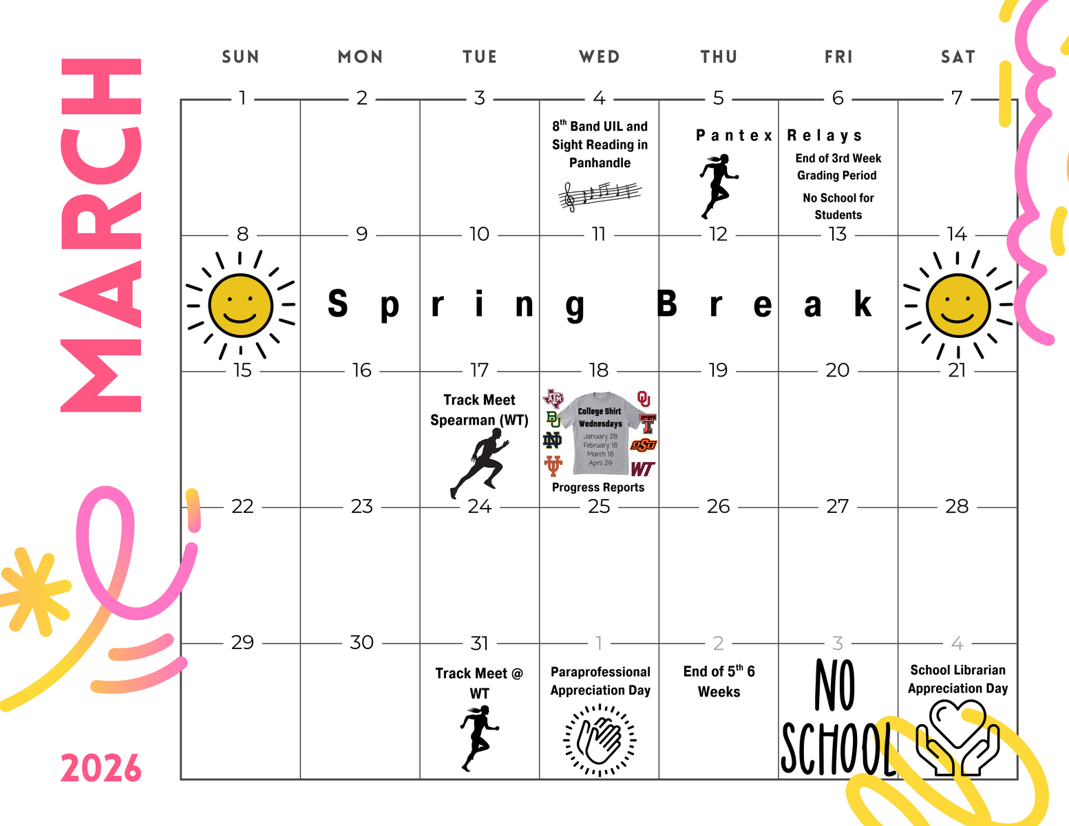 Our March calendar is here, and Spring Break is just around the corner!