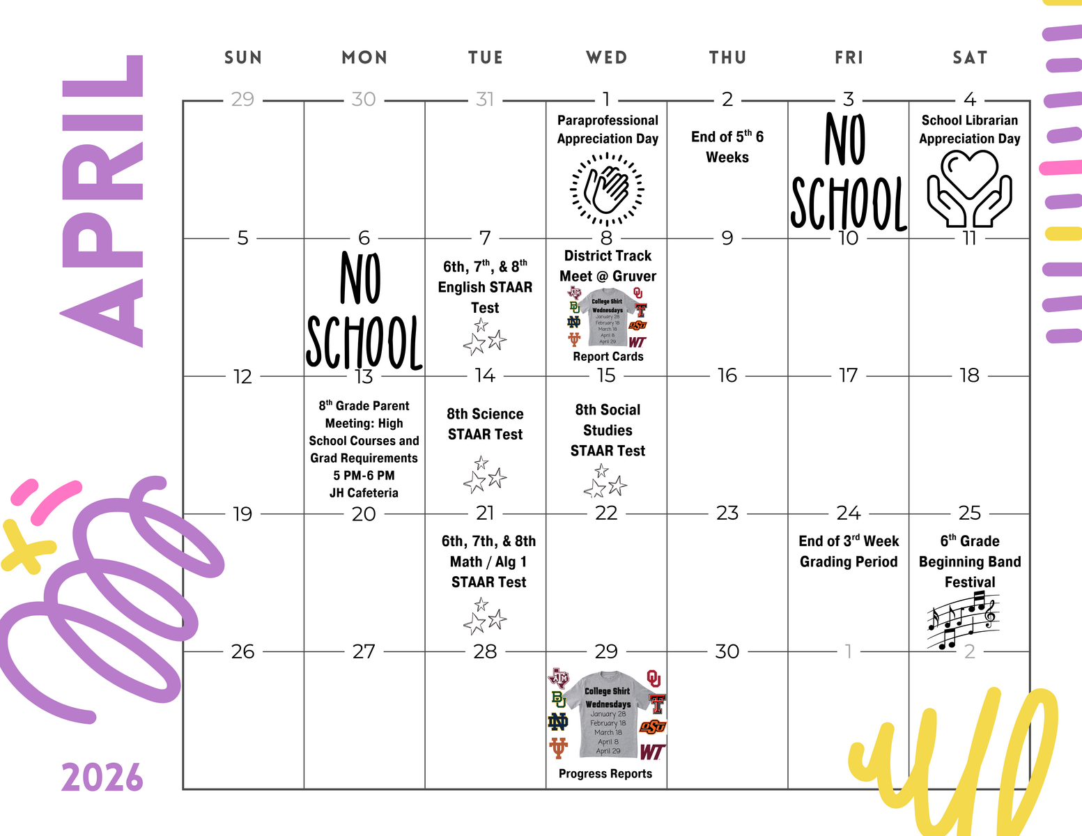 We wanted to share this as soon as possible to help parents and guardians plan ahead, especially with upcoming STAAR testing dates.All testing dates are included on this calendar, and you can also ...